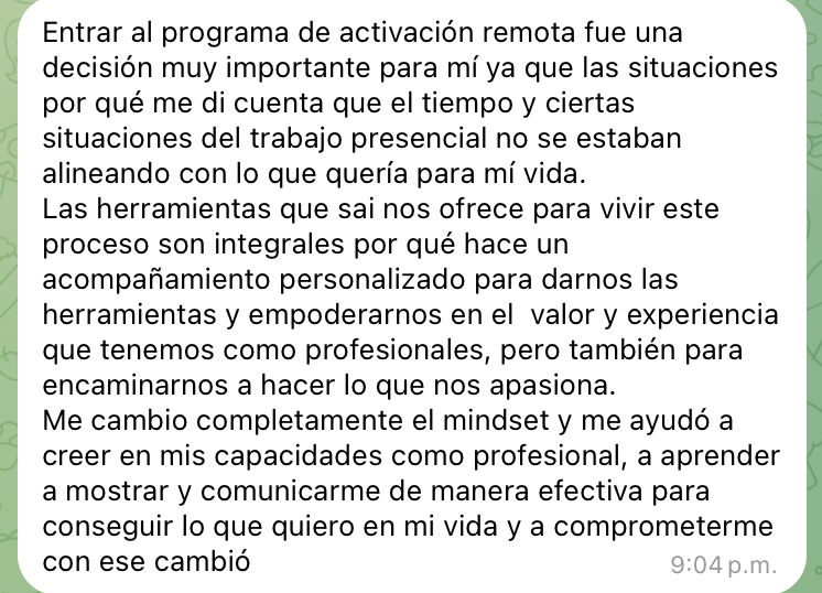 ✅ Sabes que el trabajo remoto no es un sueño, sino una habilidad que puedes desarrollar con un sistema probado.